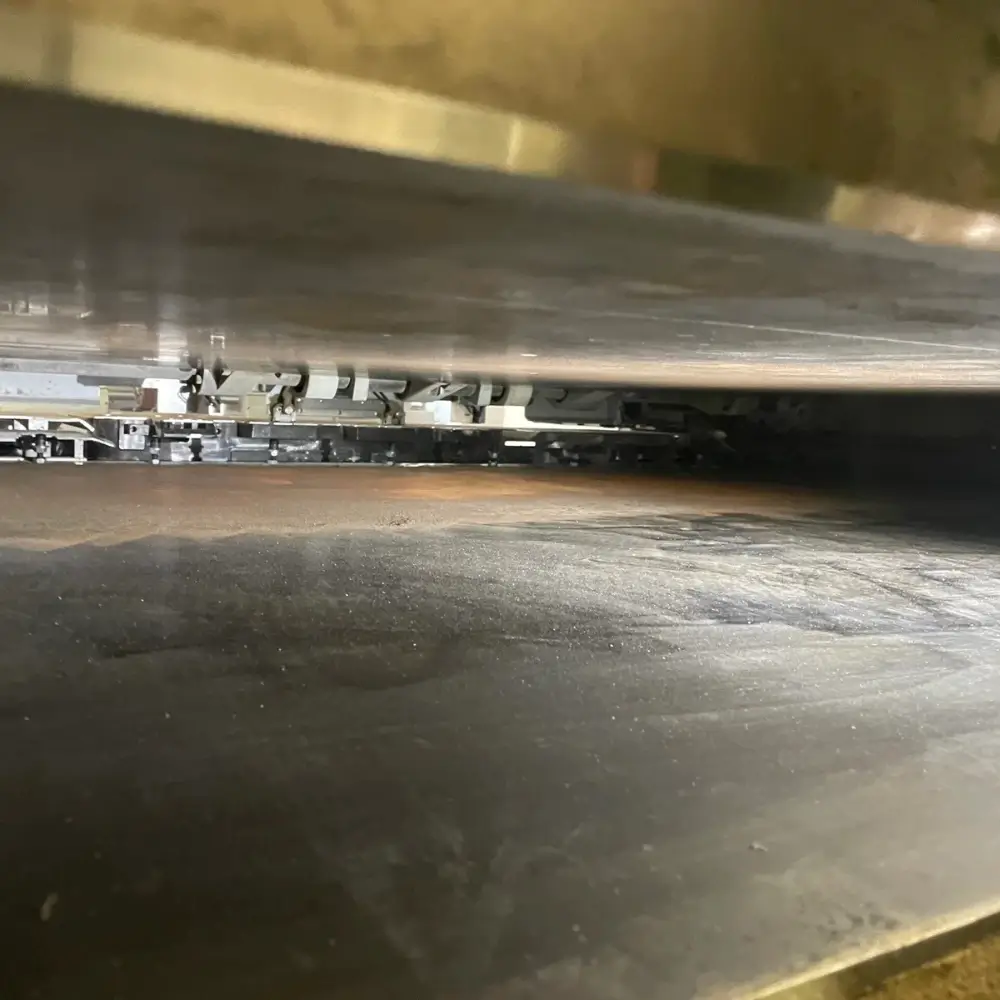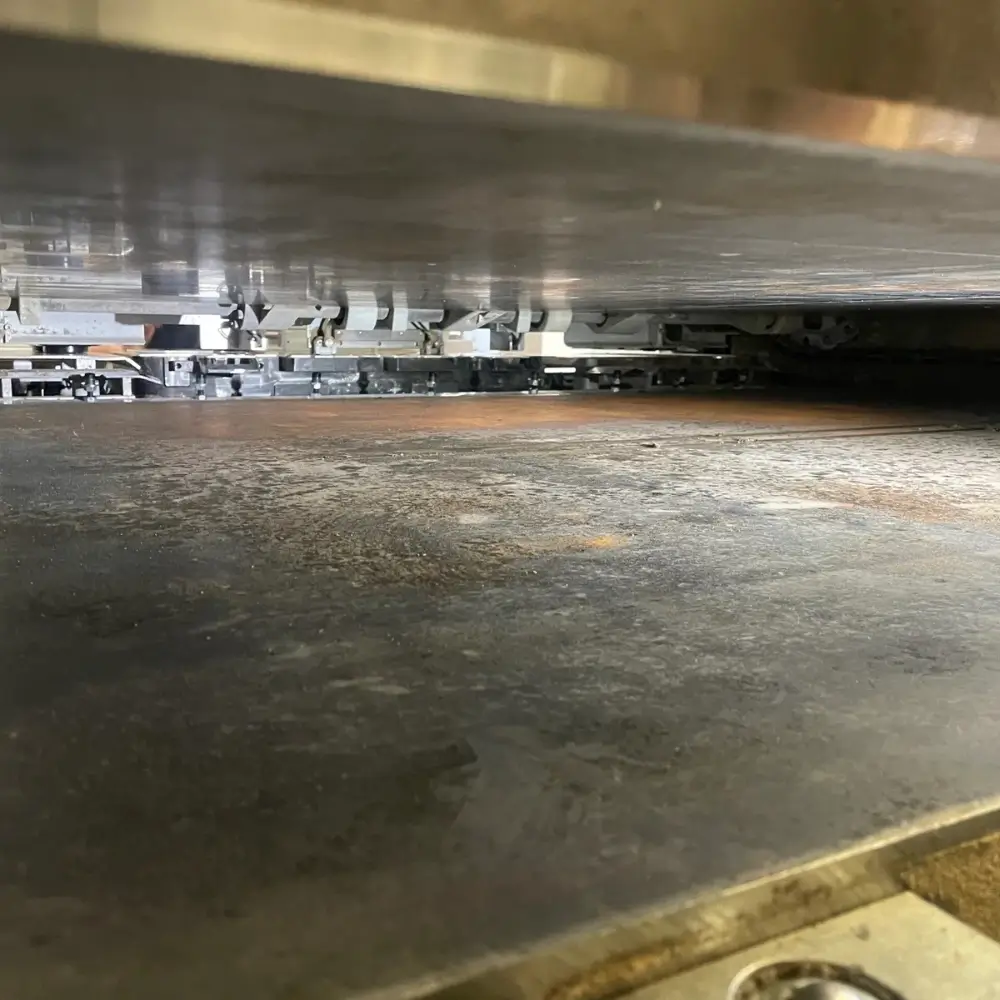 This specialized process removes rust from the platen area. It significantly reduces setup times, minimizes manual cleaning efforts, and improves overall machine performance.